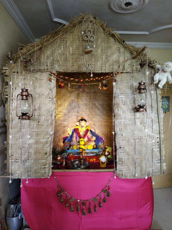 I have made a jhopdi purely eco friendly. No artificial material used at the time of making. Made with real bamboo, chatai and other things. Its give us the look of village house. And i have selected murty also like that its bal swaroop murty.