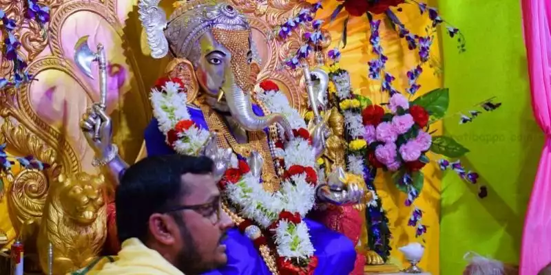 Ganpati idol is silver in material, each year idol is gradually increases in size by silver coating only. In Nashik District Famous Ganesha is “Chandicha Ganapati”. This temple is maintained by “Ravivar Karanja Ganeshotsav Mandal, Nashik”. This Mandal had completed 93 years in 2011 – 2012. To oraganize the Ganesha Festival in Nashik with the inspiration of Respected Shri. Lokmanya Tilak in Nashik Late Shri. Gangalal Pannalal Halwai had opened a Trust, in which they had selected trustees from Ravivar Peth, Nashik and from the establishment of this trust Late Shri Vishunu Rahalkar, Late. Shri Dadasaheb Gadre. In year 1978, members of the mandals had decided to build silver statue of Shri Ganesha, and which got enormous contribution of devotees from all across Maharashtra. From this contribution present statue were made which is of 201 kg of silver. This mandal now operates a small hospital on charitable basis.