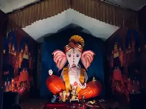 Totally eco friendly made with the help of newspapers and bamboo sticks and the main thing is no professional artist involved only mandal boys have created the whole idol of 11.5 feets
