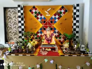 we have made different indoor and outdoor games ie Chopat, chess, tug of war for modak, lagori, chess, tennies ball flower pot, tree of carrom coins, shutter cock toran glass marbel Modak. Mouses are made from clay, all things are eco friendly. Ganpati Bappa Morya!!!!!!